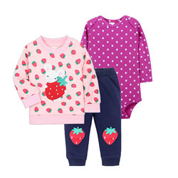 Conjunto informal de ropa de fábrica con dibujos animados para hombre, 2 mamelucos, pantalones, trajes para niños, venta al por mayor, conjuntos de 3 piezas baratos